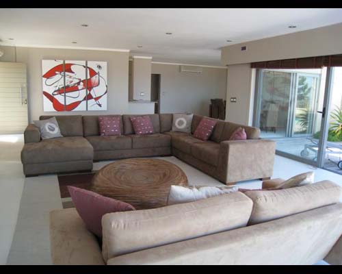 The décor is contemporary African throughout, with select art on the walls and beautiful rugs displaying soft ethnic colours, on cool stone floors.