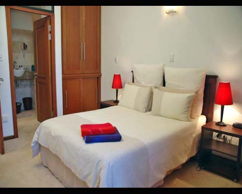 The three bedrooms are all en-suite, and each is luxuriously appointed. Two rooms have queen-sized beds, and the third can be made up either as a king-size bed or as two single beds.