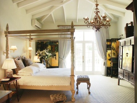 This large air-conditioned bedroom offers a Four Poster King size extra-length bed, a bathroom en-suite with Victorian bath / telephone shower and a separate marble shower, a separate lounge and a large sheltered balcony with views of Table Mountain and the Cape Peninsula.
