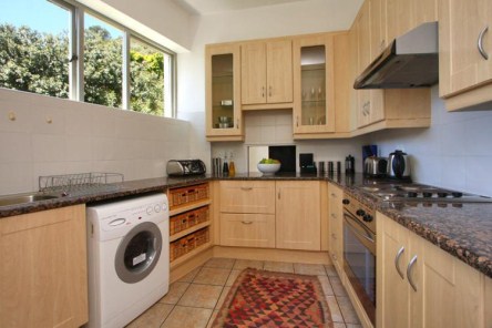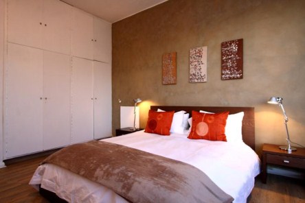 The bedroom has built-in cupboards and a king-size bed. The bedroom’s radio alarm clock will ensur that early risers can enjoy the Cape’s fabulous sunrises, which are almost as stunning as the sunsets.