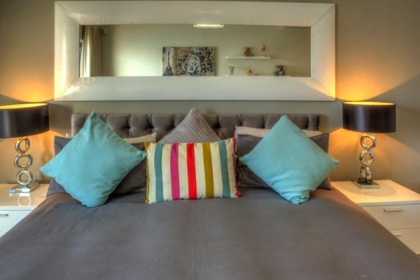 Sleek, contemporary-chic décor continues in the second bedroom of the penthouse, which offers a queen size bed, ample cupboard space and also opens onto the sheltered terrace with beautiful sea views.