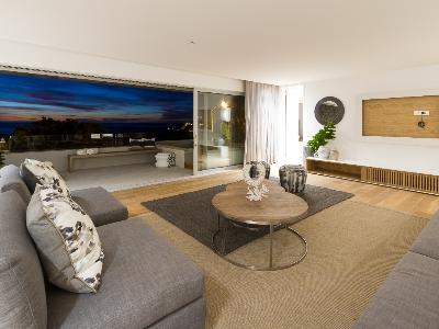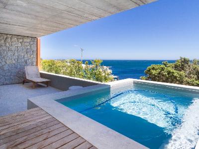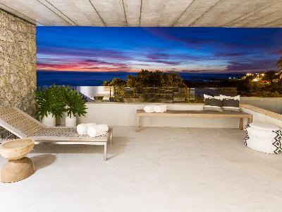 It is magnificent, with breath-taking sea views, a fully equipped kitchen and a spacious open plan living and dining area. This opens onto the patio with a crystal blue swimming pool and relaxing loungers.