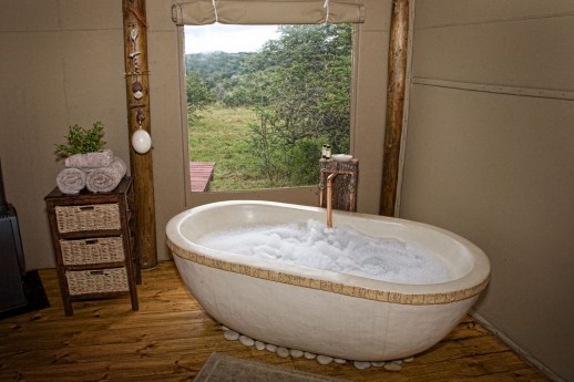 Each of the five tents has an open deck with plunge pool, air conditioning (hot & cold), fire place, large oval bath and outdoor shower.